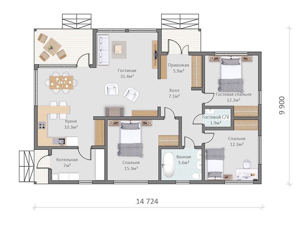 Вы получаете готовый объект от фундамента до чистовой отделки. Все этапы работ и материалы четко прописаны в договоре